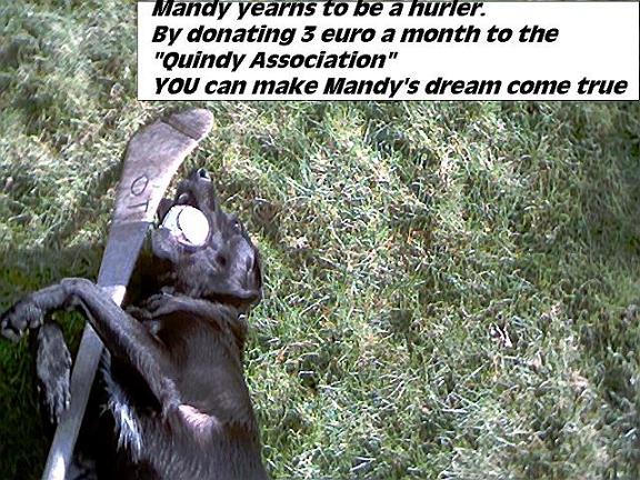 The main reason I named this "Dead Mandy" was the glazed look in her eyes, which resembles the look of a dead person. The idea of linking Cucullain to this picture was of course the presence of the sliotar, protruding rathar uncomfortably from her mouth!