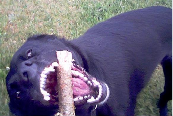 Hmm.... Indeed! A bit of a disturbing picture but still one of my favourites, (It's the background on my computer)This picture was taken out the front of my house, where I found Mandy promptly chewing on a stick when I came home! Rushing into the house, to grab my digital camera, I took over 50 pictures of her playing with the stick, jumping up, biting, jumping my front wall to retrieve it! Out of them all, this is my favourite! But doesn't she look like a psycho, honestly? Anyway, if you are a bit of an auld psycho yourself, then clicking on the picture will open a website where you can view all you need and be with kindred spirits!